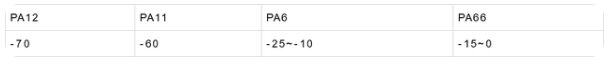 尼龍12的脆性溫度最低,達(dá)-70攝氏度,因此,可廣泛用于耐低溫的部件。下表列出尼龍樹(shù)脂的脆性溫度:6)柔韌性