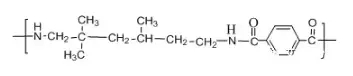 英文名:polytrimethyl hexamethylene terephthalamide;transparent polyamide resin;透明尼龍是無定形聚酰胺,化學(xué)名稱為:聚對(duì)苯二甲酰三甲基己二胺。其分子結(jié)構(gòu)式為: