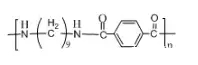 英文名:Polyamide10T or Nylon10T;簡(jiǎn)稱PA10T。尼龍10T,又聚酰胺10T,即聚對(duì)苯二甲酰癸二胺。其分子結(jié)構(gòu)式為: