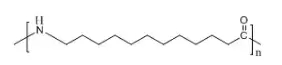 英文名:Polyamide12 or Nylon12;簡(jiǎn)稱PA12。尼龍12,又稱聚酰胺12,即聚十二酰胺。分子結(jié)構(gòu)式為: